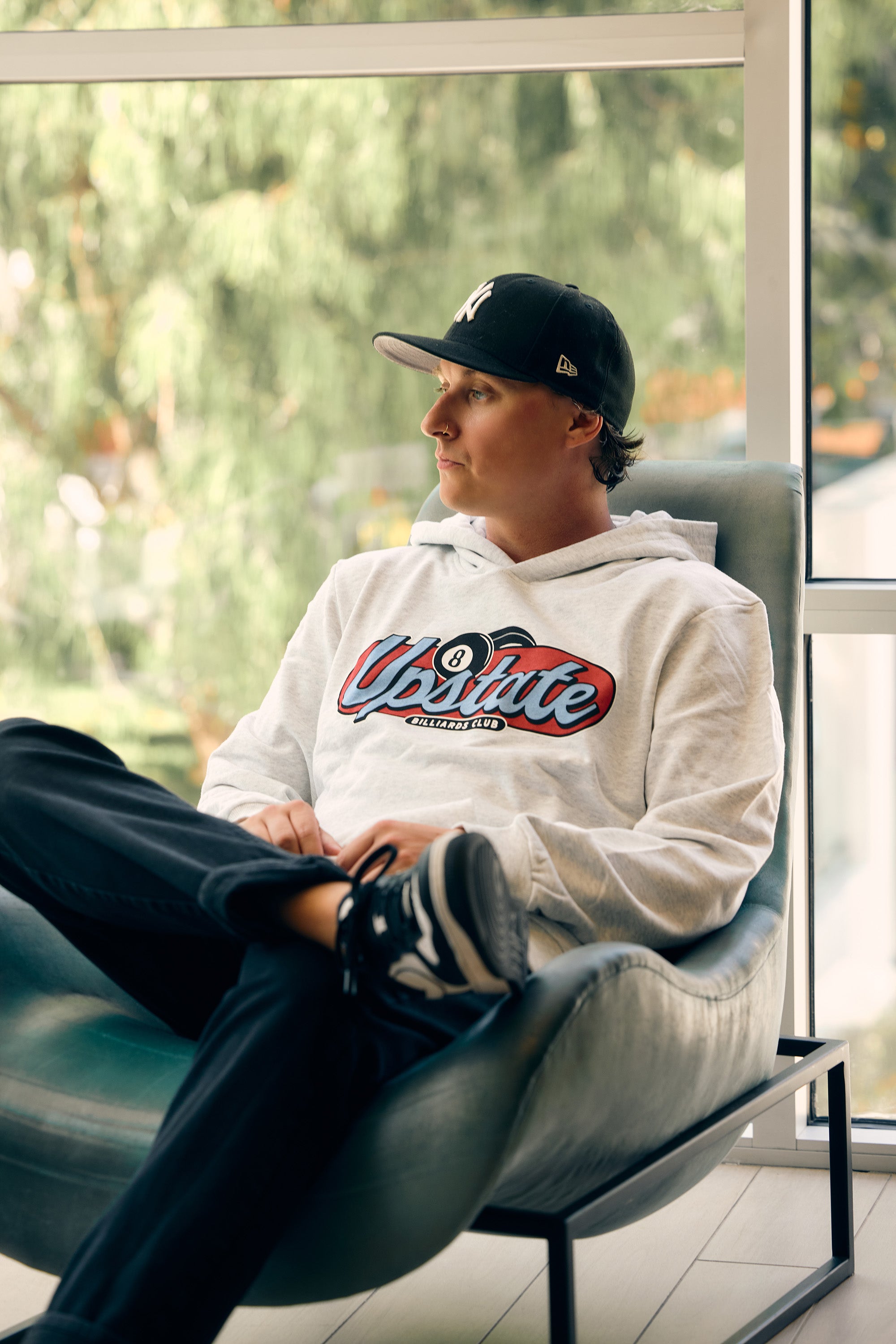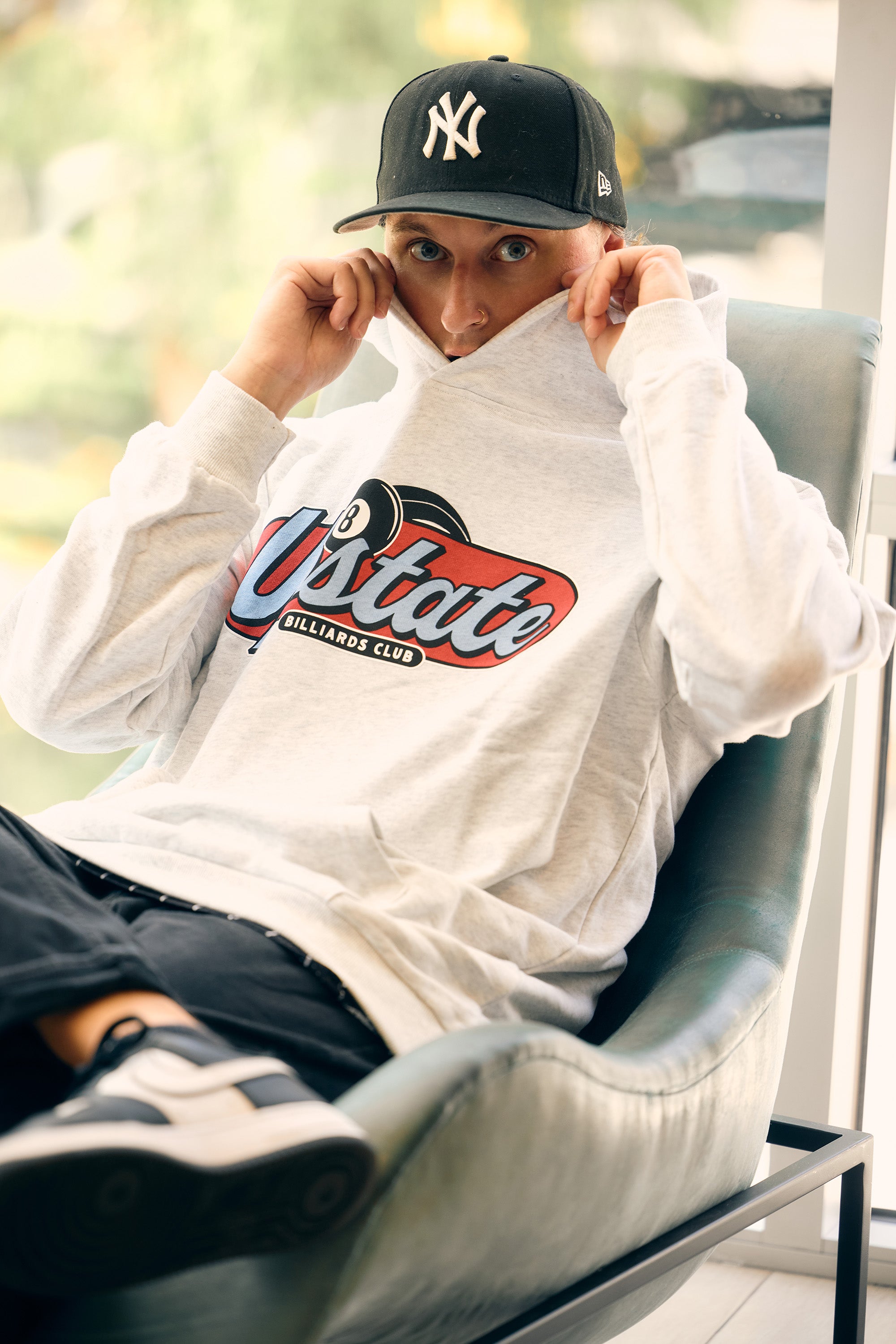Straight from the corner pocket. The Billiards Hoodie takes inspiration from Upstate pool halls and hangs that go late. Oversized retro-style print on soft heather fleece with pops of red, blue, and black that feel straight off a neon bar sign. Cozy enough for the crib, clean enough to post up in town.